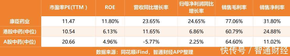 然而截至 8 月 22 日,公司当前市盈率 (TTM) 仅为 11.47 倍,与港股中药板块的其他公司对比,康臣药业在 ROE 指标排第一的情况下,PE 估值表现仅位列行业第 8,虽在中位水平之上但仍远低于平均水平 23.40 倍。