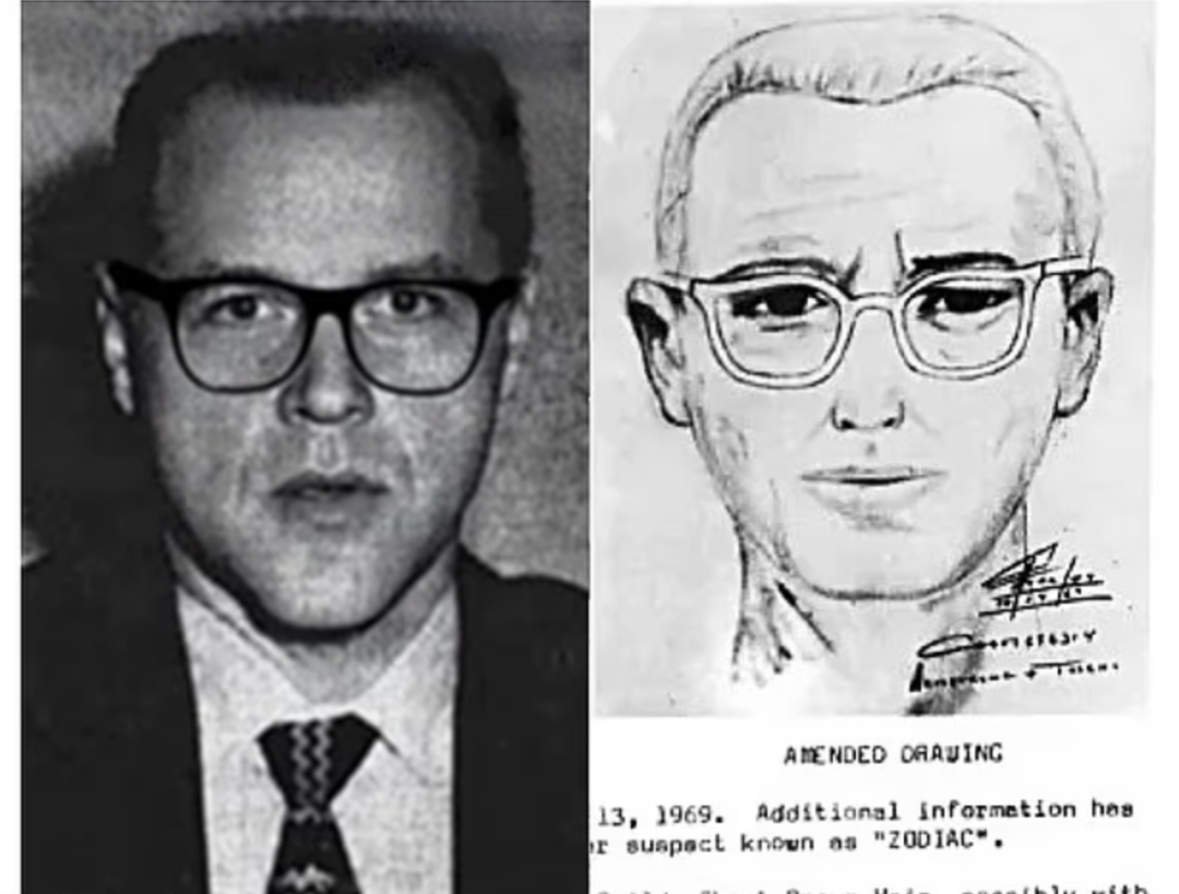 增强版的马文·马戈利斯/梅里尔照片与旧金山警察局公布的十二宫杀手合成素描图的对比。© Alex Baber