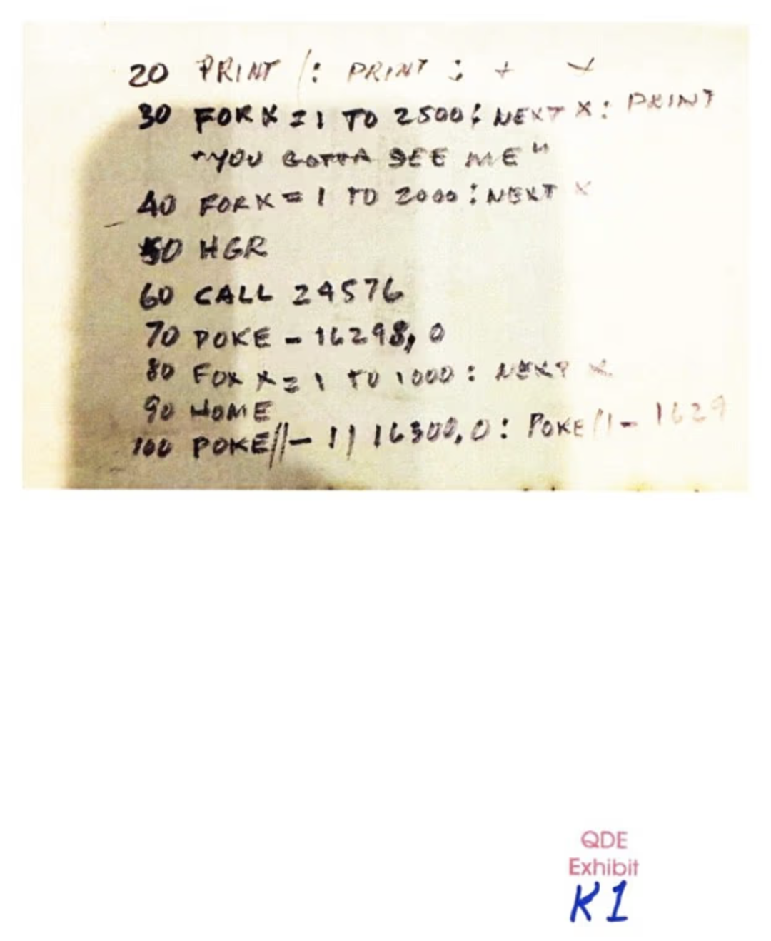 另一幅描绘语音调制装置的图画似乎与十二宫杀手的一些炸弹技术示意图以及他使用的语音拼写错误如出一辙。在十二宫杀手21封已确认信件中,共有92个词存在拼写错误;而在梅里尔那幅语音调制器素描中的17个词里,也有3个出现了同样的拼写错误。