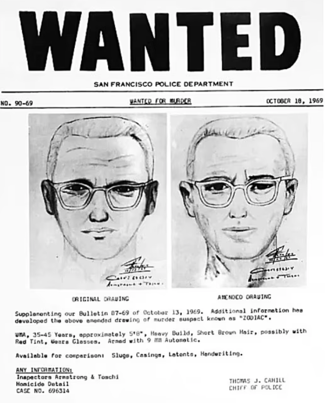 旧金山警方曾发布过一张合成画像,试图抓捕1968年至1969年间在北加州作案的“十二宫杀手”,但最终徒劳无功。© Getty Images