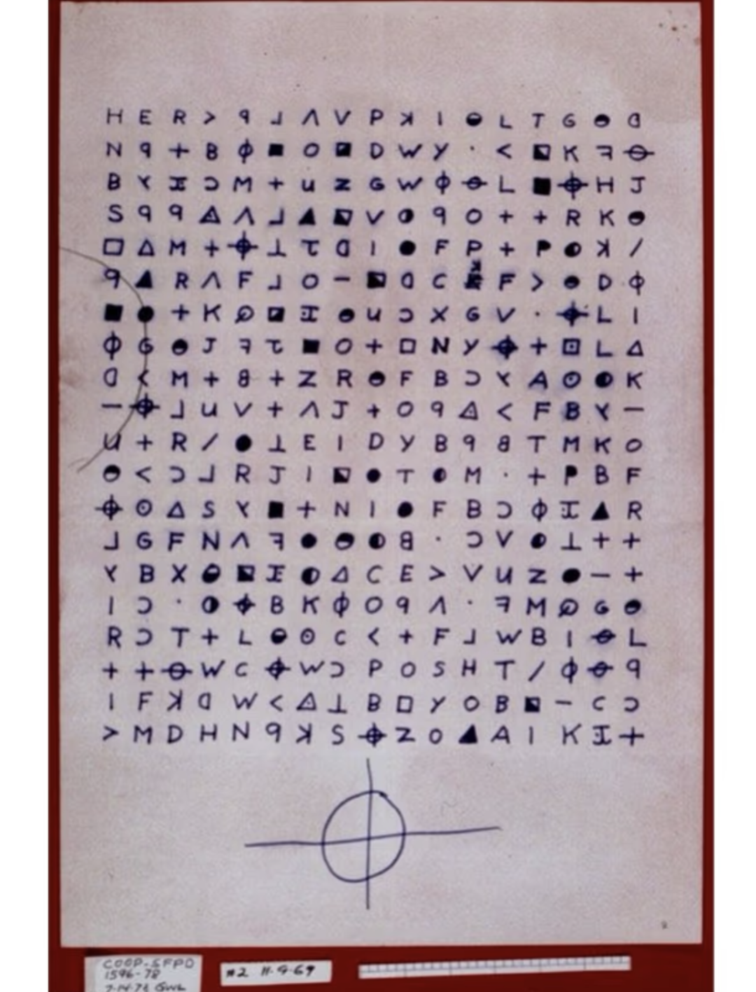 Z340密码最终在2020年被一个国际密码破译团队破解——距离十二宫杀手发送该密码已过去了半个多世纪。© Alex Baber