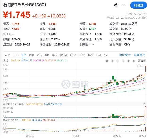 随手找了一只石油ETF,不出所料,涨停。
