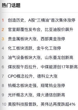 截一张雪球网3月2日下午三点半的热点新闻图,传统能源行业可谓“盛况空前”。