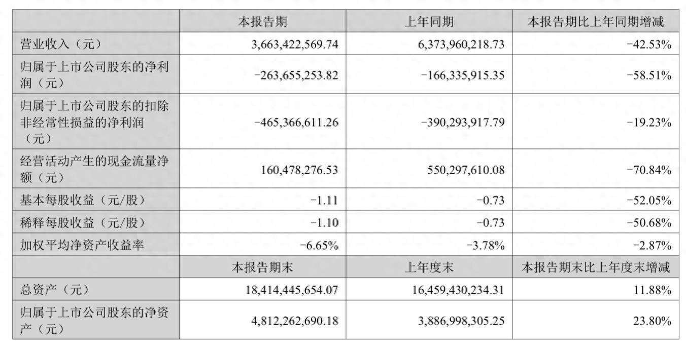 其中第二季度,公司营业收入为17.9亿元,同比下降32.8%;归母净利润自去年同期亏损1.86亿元变为亏损1.58亿元,亏损额有所减少;扣非归母净利润自去年同期亏损2.19亿元变为亏损2.48亿元,亏损额进一步扩大;EPS为-0.5392元。