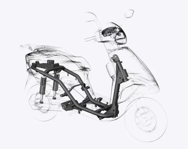 得益于宗申的制造背景,森蓝ET2在车身基础方面着力强调了可靠性。车辆采用U型管式加厚车架,并配备了更厚实的覆盖件。官方表示,这使得ET2在行驶稳定性和车身支撑性上优于普通电动车,同时外壳也更具耐久性。